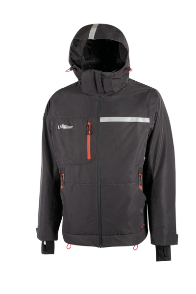 100 % Polyester. Gesteppte Arbeitsjacke aus Graphen, ermöglicht eine gleichmäßige Wärmeverteilung. Jacke mit fester Kapuze, die mithilfe eines elastischen Schiebers und eines zentralen Reißverschlusses angepasst werden kann. Wasserabweisend, Innenkragen aus weichem Mikrofleece und verstellbares Unterteil mit Innenschieber. Die Ärmelbündchen haben einen Klettverschluss und ein innenliegendes Windschutzsystem mit Daumenschlaufe. Auf der Vorderseite befinden sich zwei Taschen mit Drainagelöchern, zusätzlich zu zwei vertikalen Taschen und eine weitere vertikale Tasche auf der Brust, alle mit Reißverschluss. Zusätzlich zu den Fronttaschen gibt es zwei sehr große Innentaschen, eine davon mit Reißverschluss. Die Jacke ist in den Farbvarianten Asphalt Grey und Dark Green mit einem reflektierenden Streifen auf der linken Brustseite und an der Kapuze ausgestattet, während in der Version Black Carbon die Streifen einen Carbon-Effekt haben. Reflektierendes "U-Power"-Logo auf der rechten Brustseite und "U-Supremacy"-Aufdruck auf dem Rücken. Sichtblende auf der Rückseite, um die Arbeitsjacke individuell gestalten zu können und das Bedrucken und Besticken zu erleichtern.