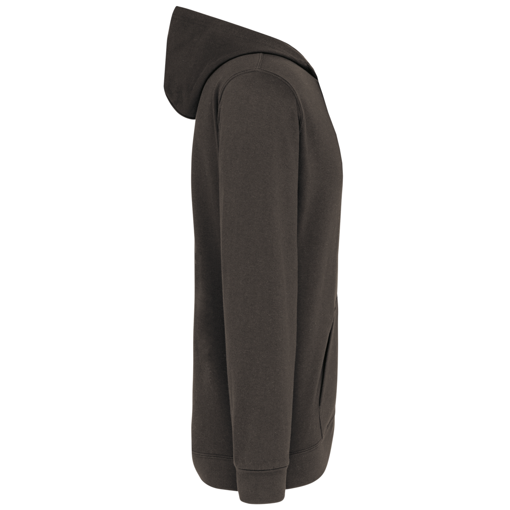 80 % Baumwolle / 20 % Polyester. Gekämmte Baumwolle. Gebürstetes Fleece. Set-in-Ärmel. Gefütterte Kapuze. Kängurutaschen. Strickbündchen an Ärmeln und Saum.