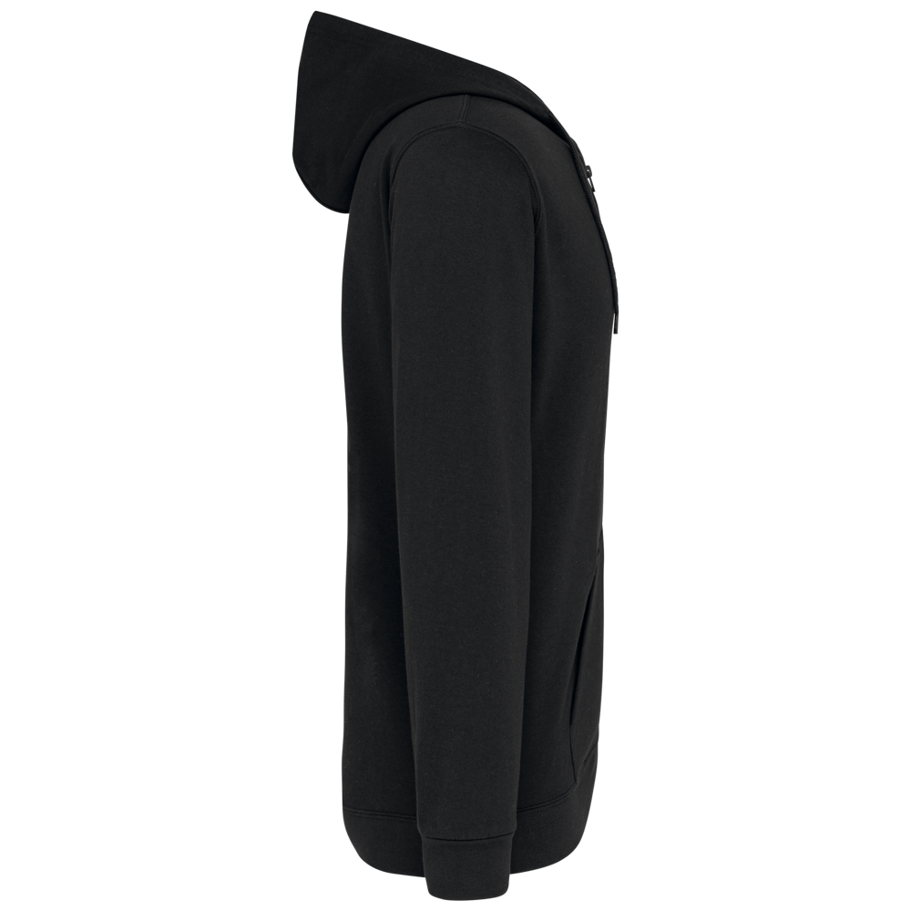 80 % Baumwolle / 20 % Polyester. Gekämmte Baumwolle. Gebürstetes Fleece. Set-in-Ärmel. Nylon-Reißverschluss. Gefütterte Kapuze mit Ton-in-Ton-Kordelzug. Kängurutaschen. Strickbündchen an Ärmeln und Saum.