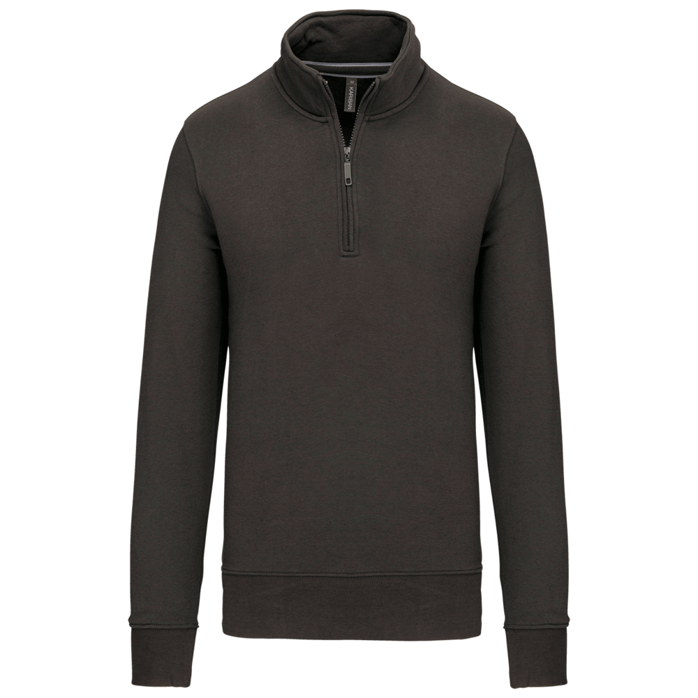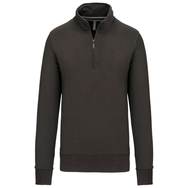 80 % Baumwolle / 20 % Polyester (Ash Heather : 79% Baumwolle / 20% Polyester / 1% Viskose). Außenseiteaus 100% Baumwolle. LSF-Behandlung (Low Shrinkage Fleece: vorgeschrumpftes Fleece). Gebürstetes Fleece mit drei Fäden aus gekämmter Baumwolle. Set-in-Ärmel. Kragen mit farblich abgestimmtem Kunststoff-Reißverschluss. Nackenband in Kontrastfarbe am Kragen (Heather Grey für alle Farben, Navy für Oxford-Grey und Ash Heather). Strickbündchen an Ärmeln und Saum.
