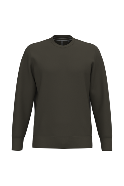 80 % Baumwolle / 20 % Polyester (Ash Heather : 79% Baumwolle / 20% Polyester / 1% Viskose). Außenseiteaus 100% Baumwolle. LSF-Behandlung (Low Shrinkage Fleece: vorgeschrumpftes Fleece). Gebürstetes Fleece mit drei Fäden aus gekämmter Baumwolle. Set-in-Ärmel. Nackenband in Kontrastfarbe am Kragen (Navu für Oxford-Grey und Ash Heather, Heather Grey für alle anderen Farben). Strickbündchen an Ärmeln und Saum.