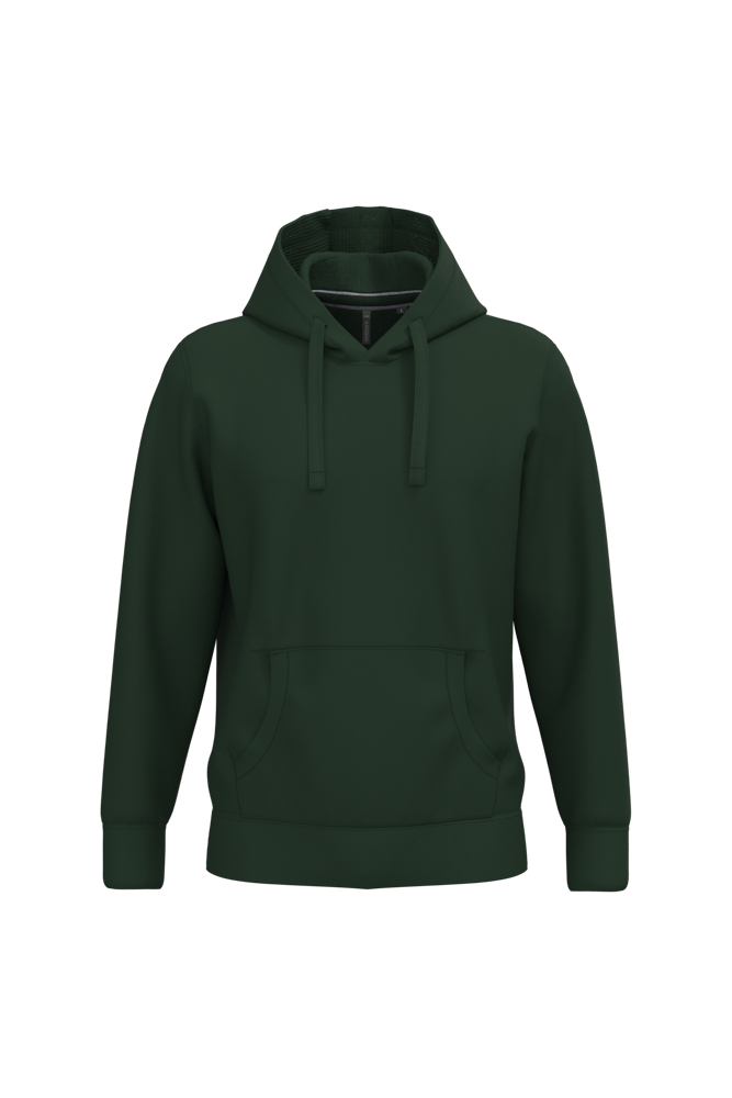 80 % Baumwolle / 20 % Polyester (Ash Heather : 79% Baumwolle / 20% Polyester / 1% Viskose). Außenseiteaus 100% Baumwolle. LSF-Behandlung (Low Shrinkage Fleece: vorgeschrumpftes Fleece). Gebürstetes Fleece mit drei Fäden aus gekämmter Baumwolle. Set-in-Ärmel. Nackenband in Kontrastfarbe am Kragen (Navy für Oxford-Grey und Ash Heather, Heather Grey für alle anderen Farben). Gefütterte Kapuze mit Wabenstruktur und Kordelzug. Kängurutaschen. Strickbündchen an Ärmeln und Saum.