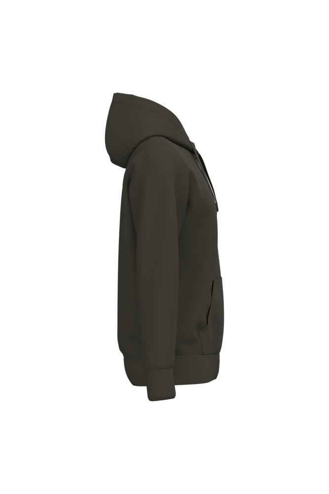 80 % Baumwolle / 20 % Polyester (Ash Heather : 79% Baumwolle / 20% Polyester / 1% Viskose). Außenseiteaus 100% Baumwolle. LSF-Behandlung (Low Shrinkage Fleece: vorgeschrumpftes Fleece). Gebürstetes Fleece mit drei Fäden aus gekämmter Baumwolle. Set-in-Ärmel. Nackenband in Kontrastfarbe am Kragen (Navy für Oxford-Grey und Ash Heather, Heather Grey für alle anderen Farben). Gefütterte Kapuze mit Wabenstruktur und Kordelzug. Kängurutaschen. Strickbündchen an Ärmeln und Saum.