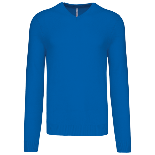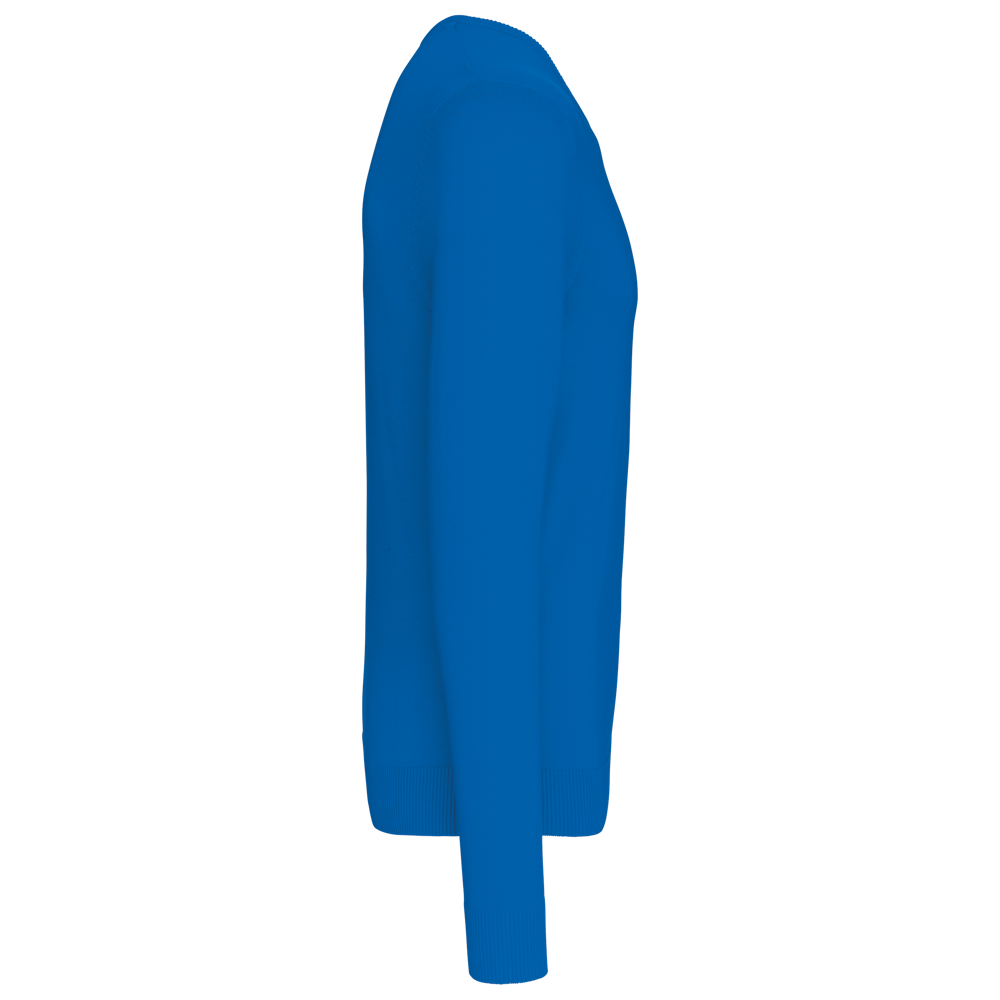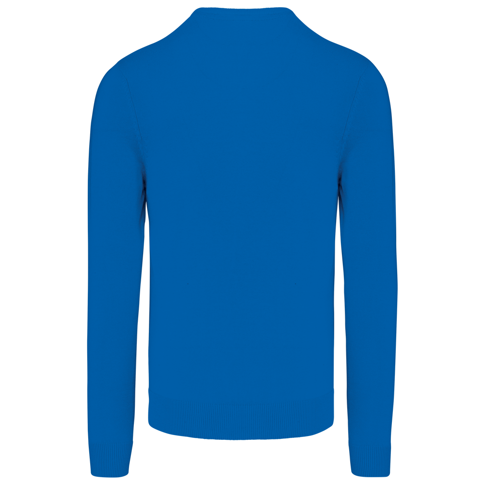 50% Baumwolle / 50% Acryl (12 gg Strick). Gerader Schnitt. Gedoppelter Rippstrickkragen. Nackenband.