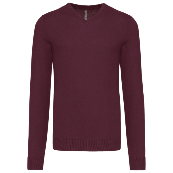 50% Baumwolle / 50% Acryl (12 gg Strick). Gerader Schnitt. Gedoppelter Rippstrickkragen. Nackenband.