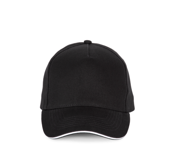 100 % Baumwolle. 5-Panel-Kappe. Über eine Metallschnalle verstellbarer Verschluss mit Schlaufe mit automatischer Blockierung.