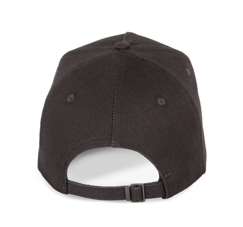 100 % Baumwolle. 5-Panel-Kappe. Über eine Metallschnalle verstellbarer Verschluss mit Schlaufe mit automatischer Blockierung.