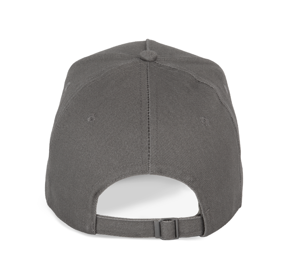 100 % Baumwolle. 5-Panel-Kappe. Über eine Metallschnalle verstellbarer Verschluss mit Schlaufe mit automatischer Blockierung.