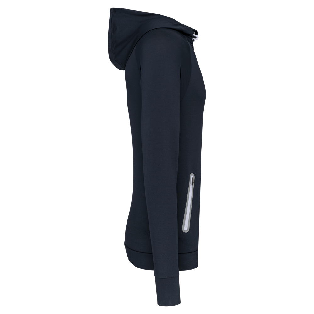 90 % Polyester / 10 % Elasthan. Gebürstetes Jerseygewebe, besonders weich und anschmiegsam. Raglanärmel. 2 reflektierende Reißverschlusstaschen. Reißverschlüsse und Kordeln : (Shirt Navy), Schwarz (Shirt Red und Sport Grey Melange) und Lime (Shirt Dark Grey).