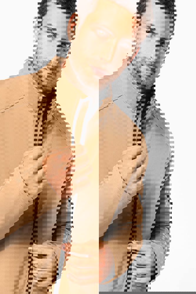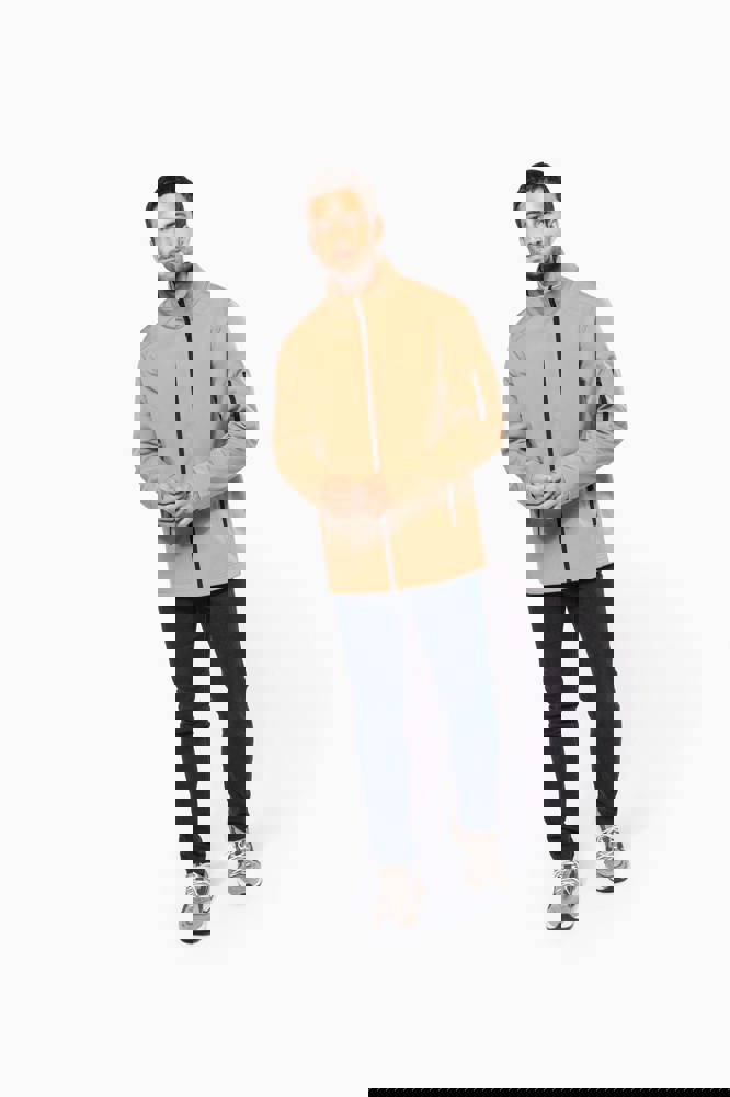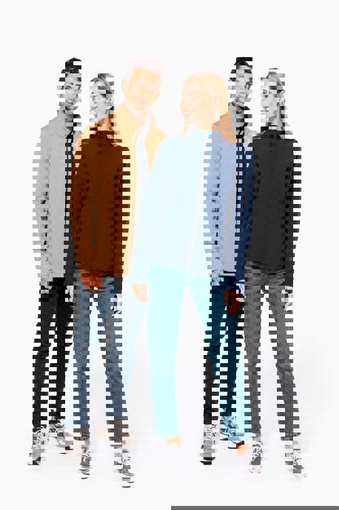3-lagiges Verbund-Fleece. Membrantechnologie: atmungsaktiv 3000 g/m²/24h und wasserdicht 8000 mm. Außenmaterial: 95% Polyester 5% Elasthan - Mittelschicht: atmungsaktives Material - Innenmaterial: Microfleece. Durchgehender Qualitäts-Reißverschluss. 2 Vordertaschen mit Reißverschluss. 1 Tasche mit Reißverschluss auf dem linken Ärmel.