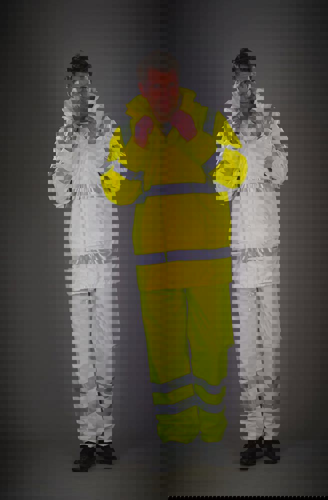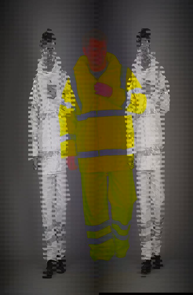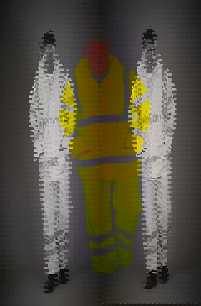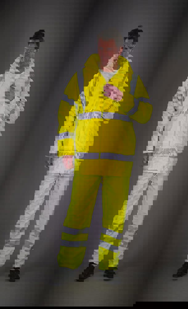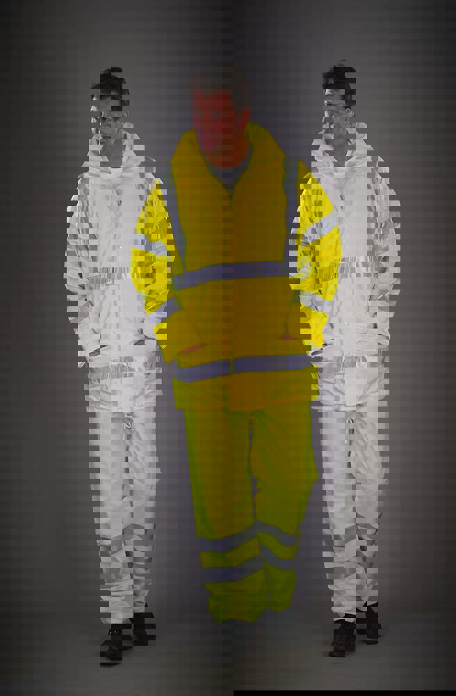 100 % Polyester. Weiches, atmungsaktives Außenmaterial und Mesh-Futter. Reflektierende 3M-Bänder wärmeversiegelt an Rumpf, Armen und auf jeder Schulter. Elastische Ärmelabschlüsse. Zwei tiefsitzende Taschen. Kordelzug am Saum. Genähte und mit Klebeband verschweißte Nähte. EEntspricht EN ISO20471:2013 Klasse 3 & EN343 Klasse 3.3.