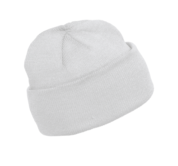 Gestrickte Mütze aus 100% Acryl. Kugelform.
