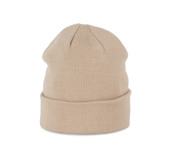 Gestrickte Mütze aus 100% Acryl. Kugelform.