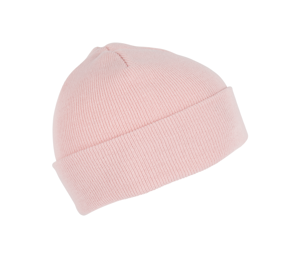Gestrickte Mütze aus 100% Acryl. Kugelform.
