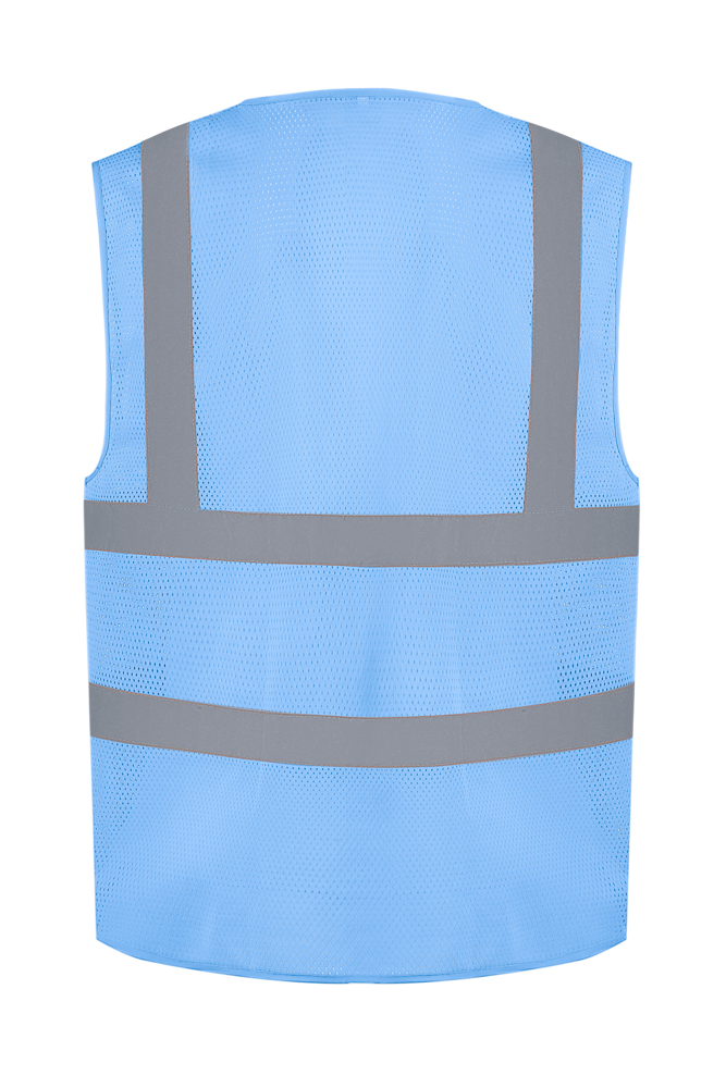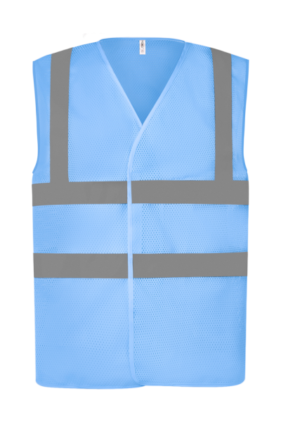 100% polyester. 100 % recycelter Polyester. Hergestellt aus PET-Kunststoffflaschen. Aus atmungsaktiver leichter Maschenware. 5 cm breite Reflexstreifen um den Körper und auf jeder Schulter. Klettverschluss an der Vorderseite. Entspricht American National Standard ANSI/ISEA 107-2004 & European Standard EN ISO20471: 2013 Klasse 2 : nur Hi Vis Orange und Hi Vis Yellow.