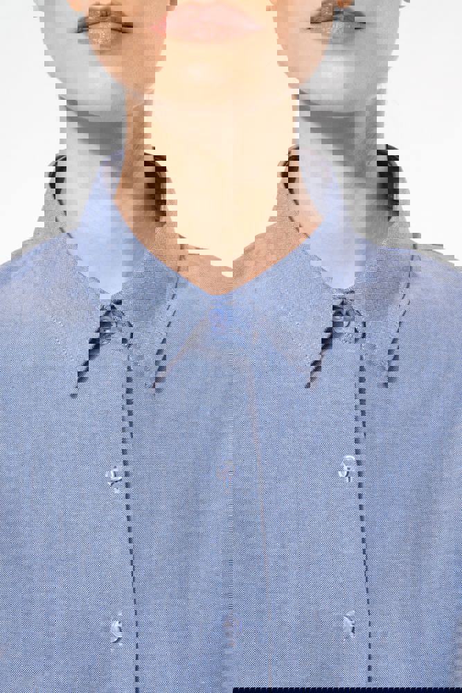 70% Baumwolle / 30% Polyester. Pflegeleichter Stoff. Klassischer, knopfloser Kragen. Farblich abgestimmte Knöpfe. 2 Kragen-Knöpfe. Körpernaher Schnitt. Abgeschrägte Manschette mit 2 Knöpfen. 2 Ersatzknöpfe. Abgerundeter Saum.