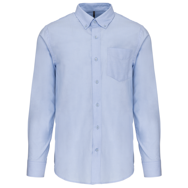 70% Baumwolle / 30% Polyester. Pflegeleichter Stoff. Verstärkter Button-Down-Kragen. Farblich abgestimmte Knöpfe. Aufgesetzte Brusttasche auf der linken Seite. Rückwärtige Schulterpasse mit 2 an den Seiten eingelegten Falten. Abgeschrägte Manschette mit 2 Knöpfen, dazu 1 Knopf auf dem Manschettenaufschlag. 2 Ersatzknöpfe. Abgerundeter Saum.