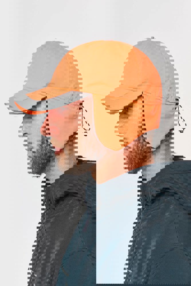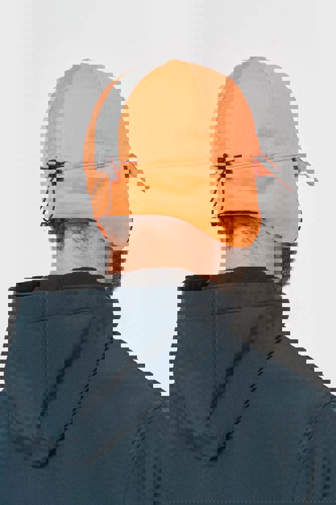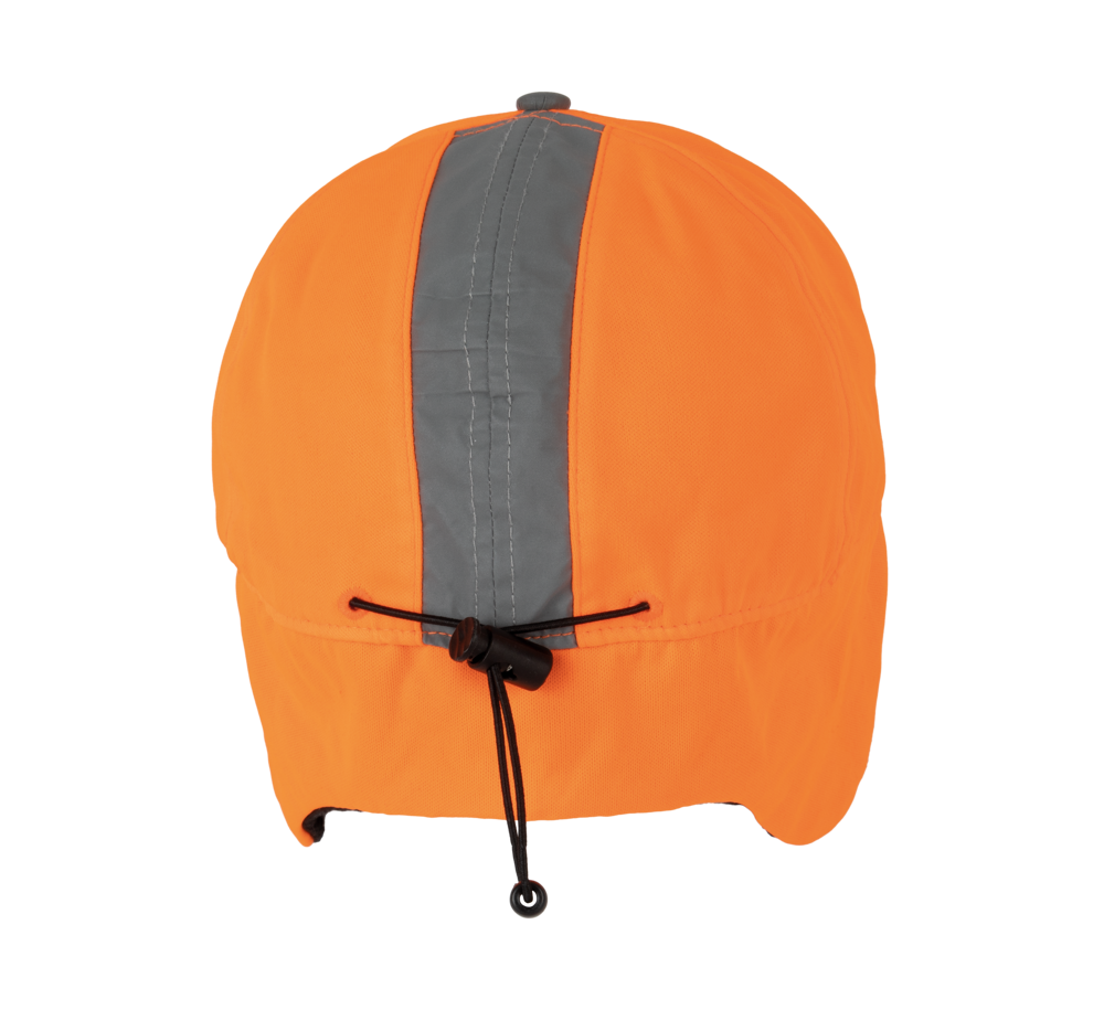 100% Polyester. 6 Panel-Kappe, nicht-laminiert. Mit Ohrenklappen. Fluoreszierende Kappe mit Fleece-Futter . Einstellbarer Kordelzug mit Stoppern.