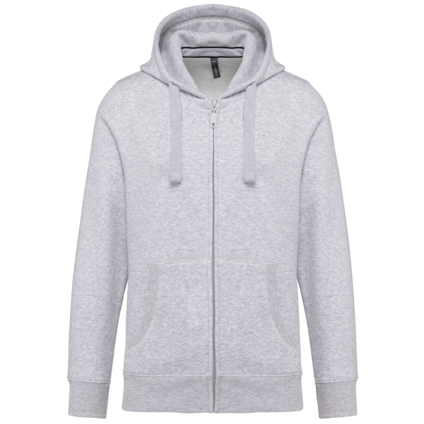 80% Baumwolle / 20% Polyester (Ash Heather : 79% Baumwolle / 20% Polyester / 1% Viskose). Außenseiteaus 100% gekämmte Baumwolle. Gebürstetes Fleece. Verstärktes Kontrast-Nackenband (Heather Grey für alle Farben, Navt für Oxford-Grey und Ash Heather). Kängurutasche. Gerippt an Bund und Saum. Gefütterte Kapuze in Kontrastfarbe innen und Kordelzug. Reißverschluss.