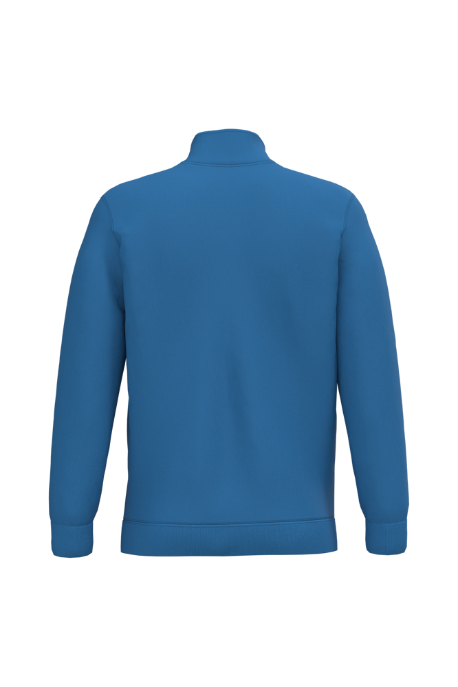 80 % Baumwolle / 20 % Polyester. Gekämmte Baumwolle. Gebürstetes Fleece. Set-in-Ärmel. Reißverschluss am Kragen und Nackenband. Saum und Ärmelbündchen in Rippstrick.