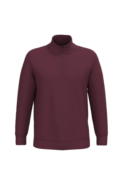 80 % Baumwolle / 20 % Polyester. Gekämmte Baumwolle. Gebürstetes Fleece. Set-in-Ärmel. Reißverschluss am Kragen und Nackenband. Saum und Ärmelbündchen in Rippstrick.