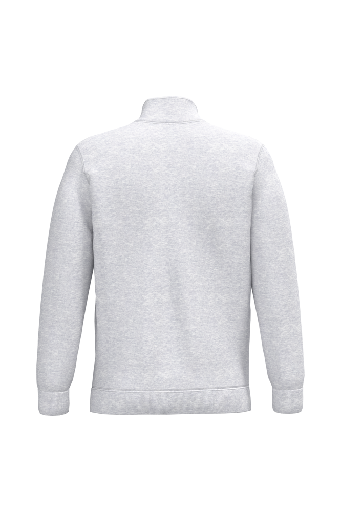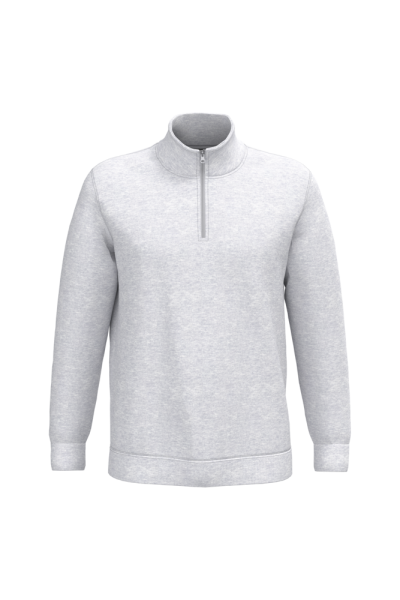 80 % Baumwolle / 20 % Polyester. Gekämmte Baumwolle. Gebürstetes Fleece. Set-in-Ärmel. Reißverschluss am Kragen und Nackenband. Saum und Ärmelbündchen in Rippstrick.