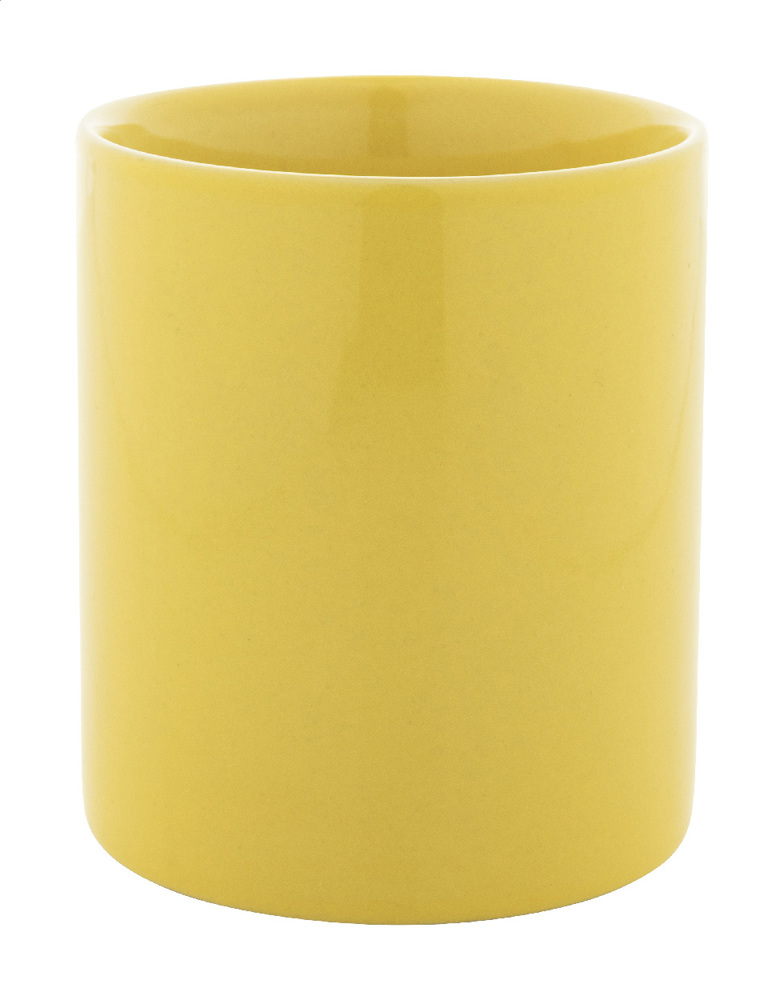 Klassischer Keramikbecher mit farbiger Hochglanzoberfläche. Füllmenge: 300 ml. Einzeln in Kraftpapierbox.