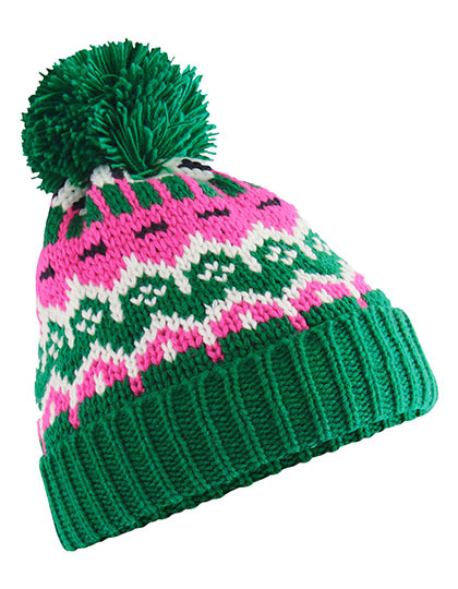 Vollfleece-Futter aus recyceltem Polyester | 56 % recyceltes Polyester | Zeitloses Fair-Isle-Muster | Klassischer Stil | Einfarbige Pompons | Design mit Bündchen für optimale Dekoration | Abreißbares Etikett für einfaches Umbranding