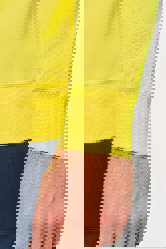 77 % recyceltes Polyester, 23 % gekämmte Baumwolle. Gebürstetes Molton, 3-fädiges LSF (Low Shrinkage Fleece). Industriewäsche und/oder Heimwäsche bei 60 °C. Reguläre Passform. Kragen, Bund und 1x1 Strickbündchen an den Ärmelabschlüssen. Nackenband am Kragen innen. Schulterverstärkung innen aus Twill 65 % Polyester/35 % Baumwolle, um Verformungen beim industriellen Waschen zu vermeiden. Kleine RFID-Tasche am Saum des Kleidungsstücks unter dem Label. EPI Classe II - Normen NF EN ISO 13688:2013 + NF EN ISO 13688/A1:2021 (Schutzkleidung - Allgemeine Anforderungen), NF EN 17353:2020: Typ A (Schutzkleidung - Ausstattung zur erhöhten Sichtbarkeit für mittlere Risikosituationen. - Prüfverfahren und Anforderungen), NF EN ISO 15797:2018 (Textilien - Industrielle Wasch- und Finishverfahren zur Prüfung von Arbeitskleidung ) : Professionelle industrielle Waschverfahren - Waschmethode Programm 8 nur mit Tunnel-Finish. Gewebtes Markenetikett.