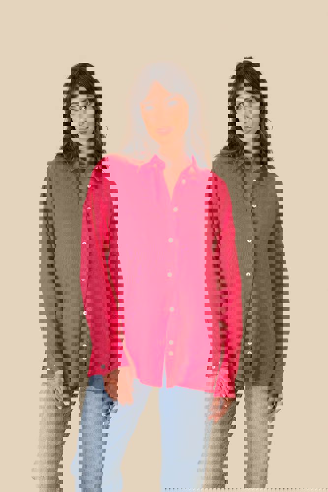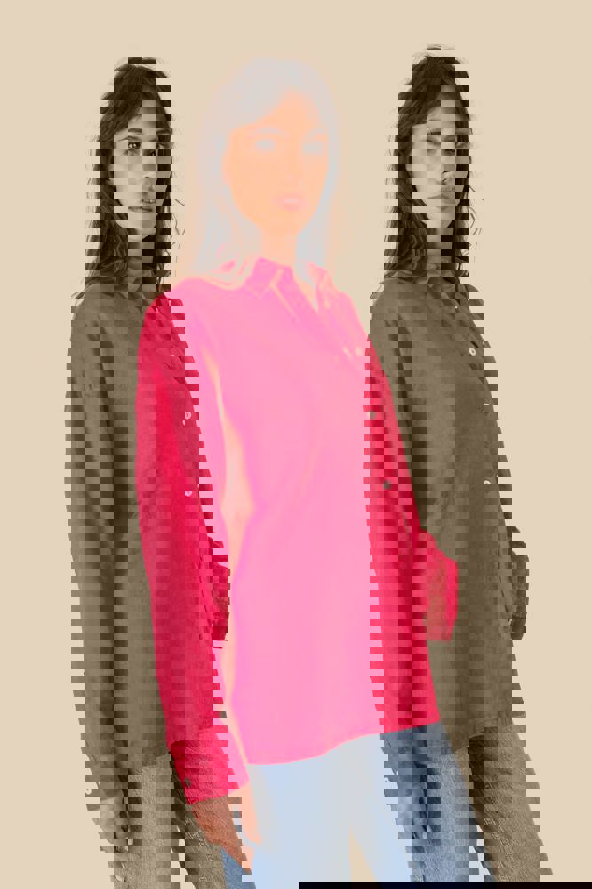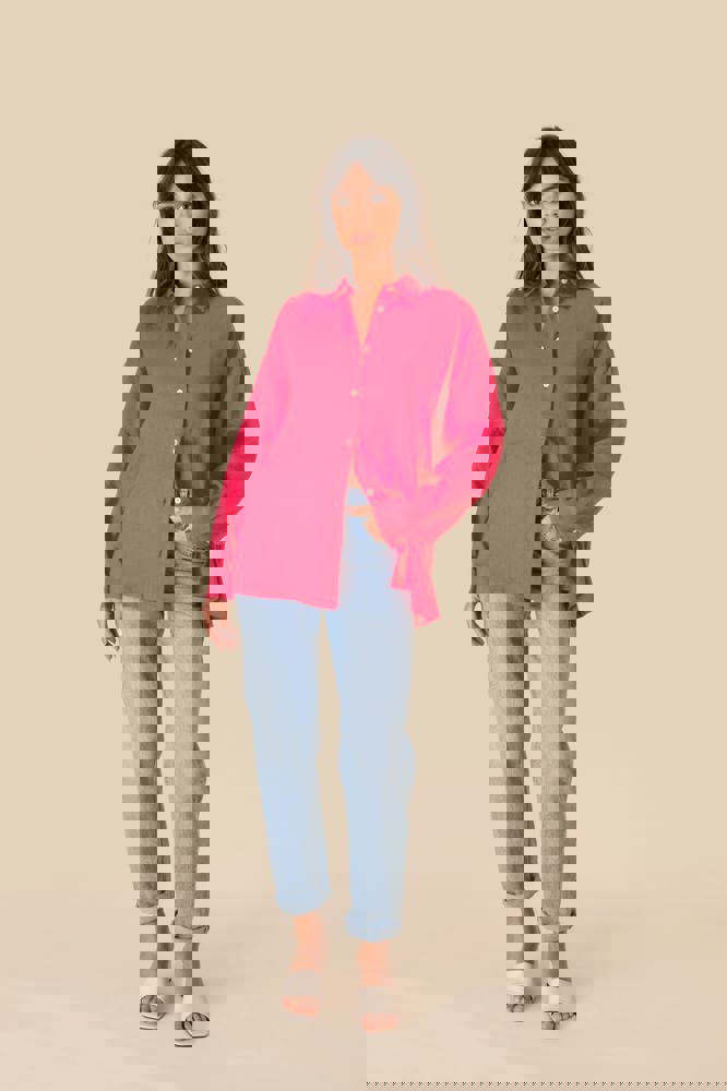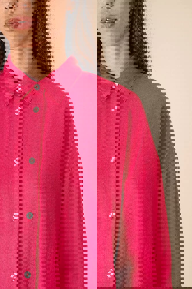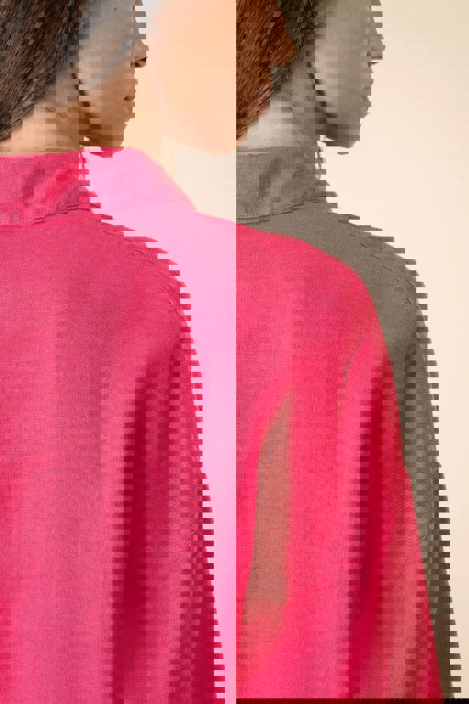 100% Leinen. Gewebt. Oversized-Schnitt mit überschnittener Schulterpartie. Knopfleiste mit Knöpfen mit Perlmutteffekt in Elfenbein. Ärmelabschlüsse mit geknöpften Manschetten und Schlitz für die Kapuzinerleiste. Einfache Ziernaht am Saum. Nach dem Nähen gewaschen: leichte Farbabweichungen der Teile möglich.