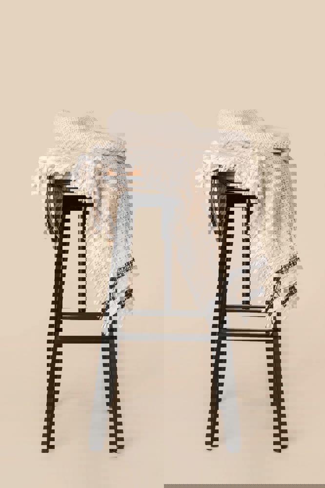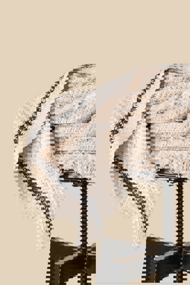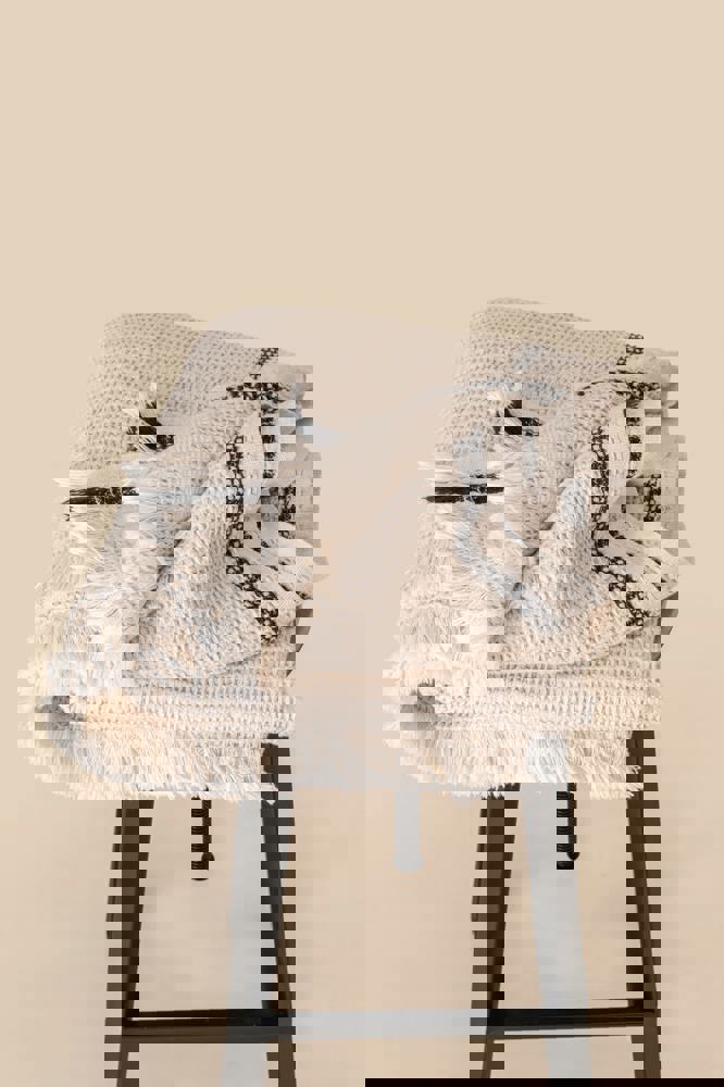 80 % Baumwolle, 20 % Leinen. Maße: 120 x 185 cm (können je nach Webkomplexität leicht variieren). Vorgewaschenes Produkt. Decke mit strukturierter Waffeloptik, Fransen an den Enden und kontrastierenden Seitenstreifen. Beidseitiges Webmuster.