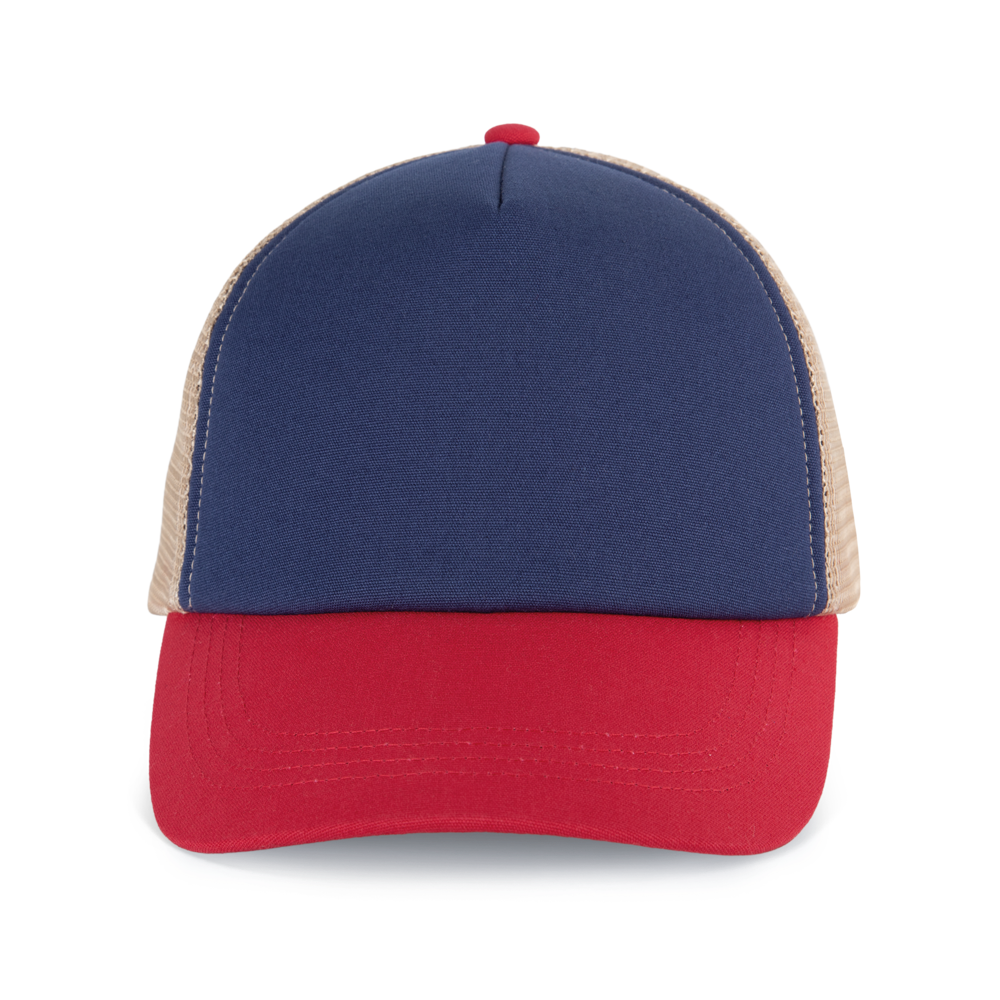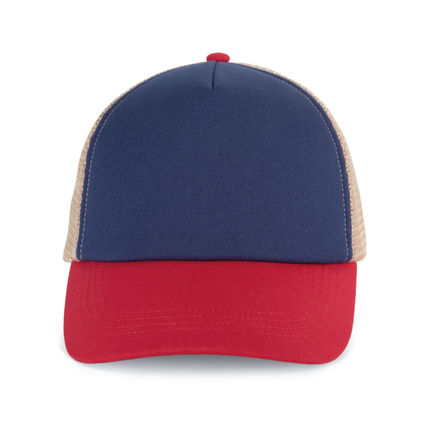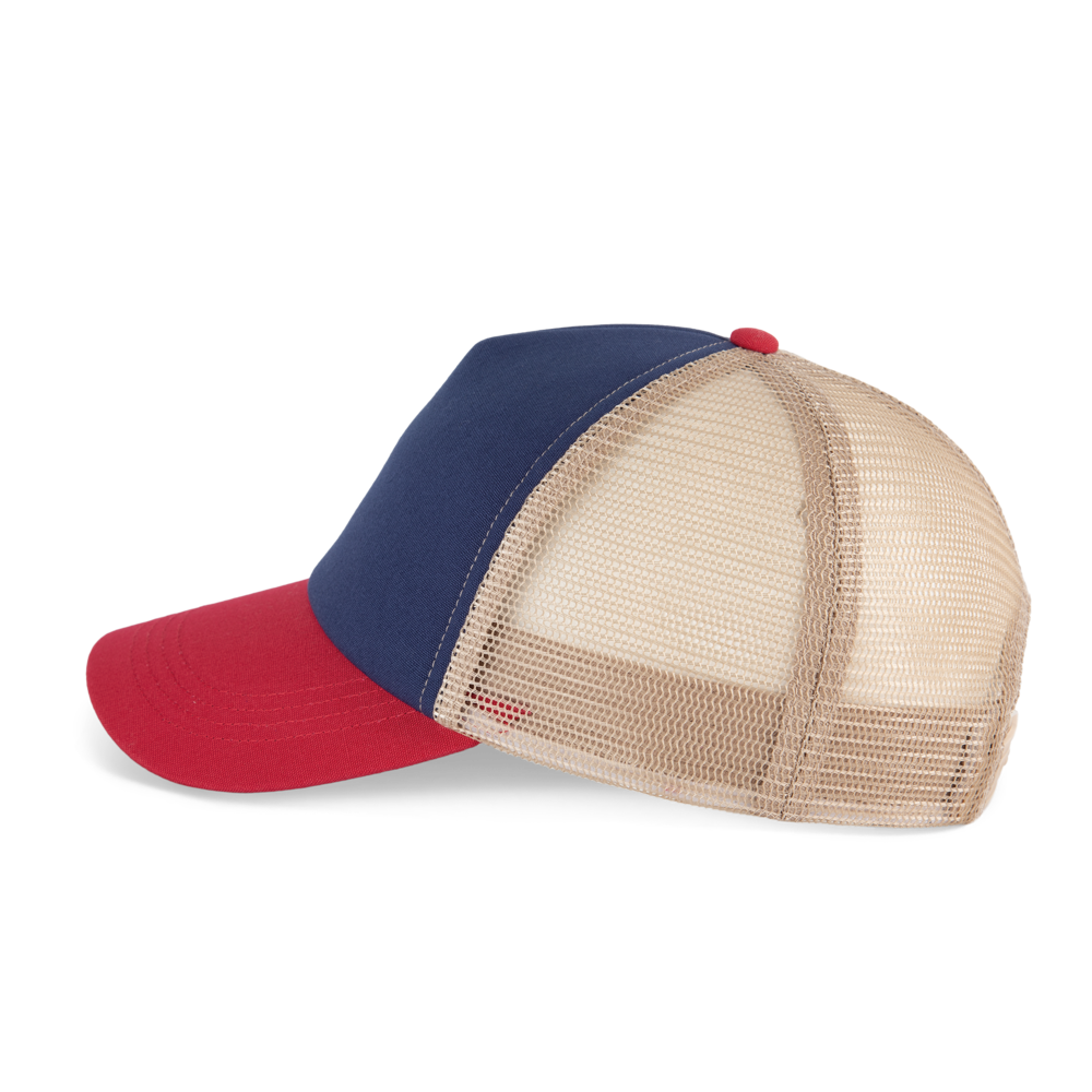 100% Baumwolle. 5-Panel-Kappe. Die K-up Gold Label-Kollektion zeichnet sich durch hochwertige Materialien und Verarbeitungen aus. Frontpanel aus Canvas-Baumwolle mit Schaumstoffstruktur und Innenfutter aus Baumwolle. Gestepptes Schrägband aus Baumwoll-Twill mit 3 Steppnähten. Rückenteil aus 100 % Polyester-Mesh mit Snapback-Verschluss. Tear-away-Etikett, das in die Innenseite des Vorderteils eingenäht ist.