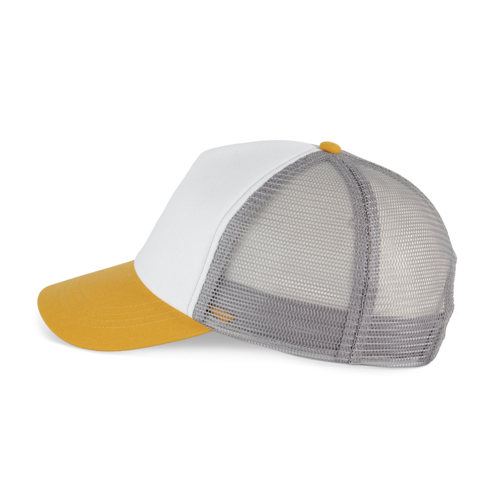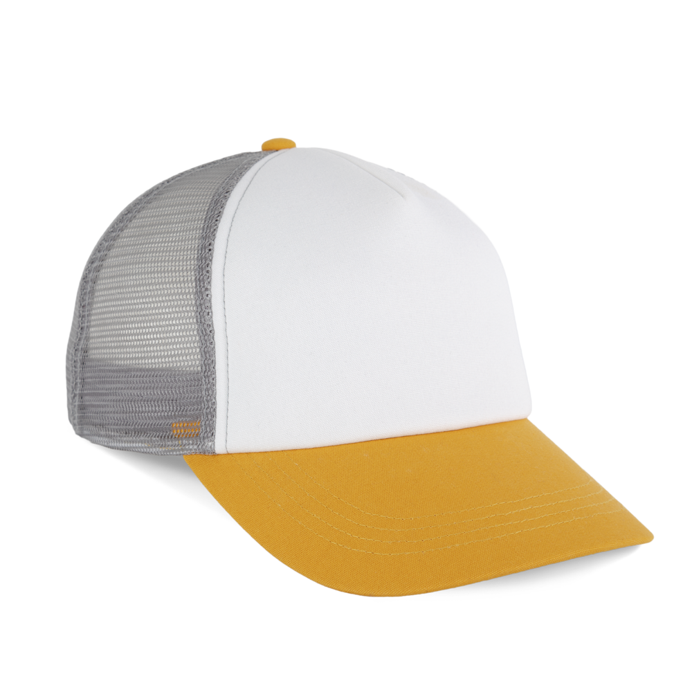 100% Baumwolle. 5-Panel-Kappe. Die K-up Gold Label-Kollektion zeichnet sich durch hochwertige Materialien und Verarbeitungen aus. Frontpanel aus Canvas-Baumwolle mit Schaumstoffstruktur und Innenfutter aus Baumwolle. Gestepptes Schrägband aus Baumwoll-Twill mit 3 Steppnähten. Rückenteil aus 100 % Polyester-Mesh mit Snapback-Verschluss. Tear-away-Etikett, das in die Innenseite des Vorderteils eingenäht ist.