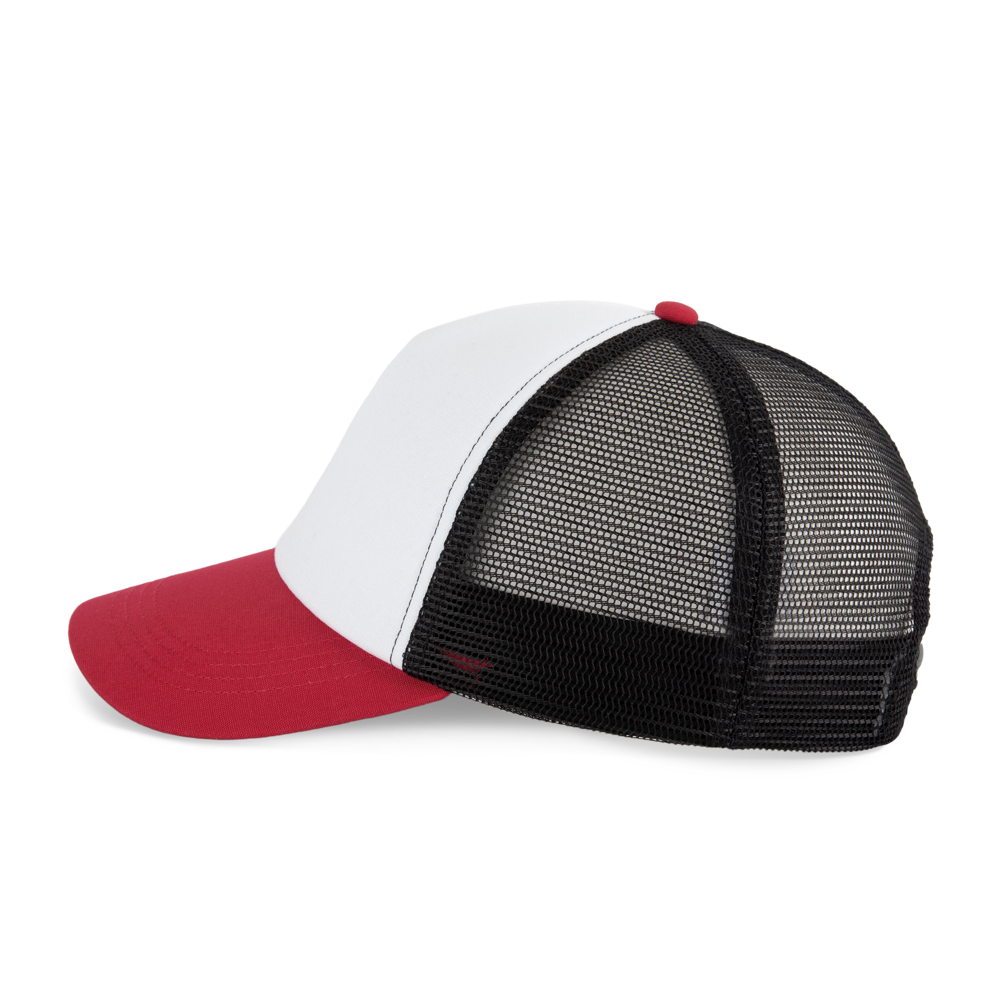 100% Baumwolle. 5-Panel-Kappe. Die K-up Gold Label-Kollektion zeichnet sich durch hochwertige Materialien und Verarbeitungen aus. Frontpanel aus Canvas-Baumwolle mit Schaumstoffstruktur und Innenfutter aus Baumwolle. Gestepptes Schrägband aus Baumwoll-Twill mit 3 Steppnähten. Rückenteil aus 100 % Polyester-Mesh mit Snapback-Verschluss. Tear-away-Etikett, das in die Innenseite des Vorderteils eingenäht ist.