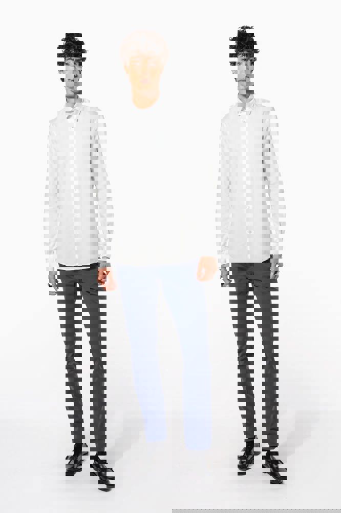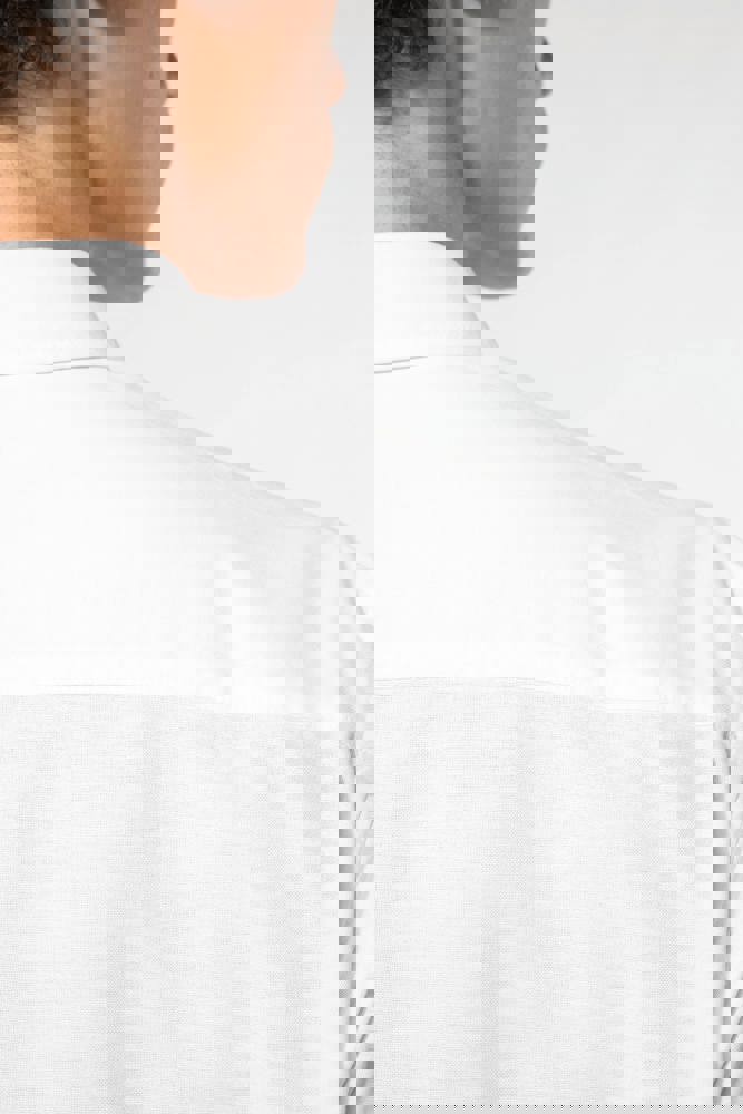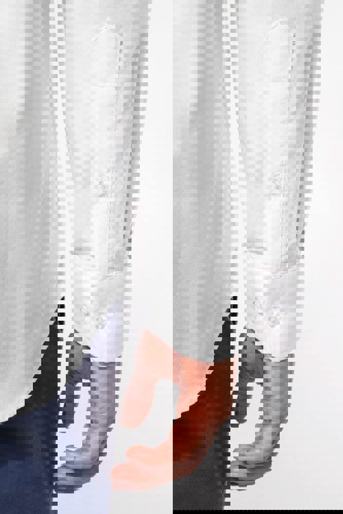 70 % Baumwolle / 30 % Polyester. Oxford-Stoff. Gerader Schnitt. Pflegeleicht (Easy Care-Behandlung). Kragen mit Kragennadeln. Knopfleiste mit Ton-in-Ton-Knöpfen aus Kunststoff. Passe am oberen Rücken. Anpassbare, abgerundete Manschetten mit zwei Knöpfen sowie Manschettenschlitz mit Knopf. Einfache Ziernaht am abgerundeten unteren Saum. Kein Markenetikett am Halsausschnitt, nur Größenangabe, zur einfacheren Veredelung.