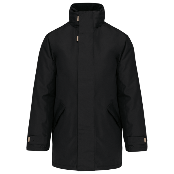 Außenmaterial: 100% Oxford-Polyamid. Futter: 100% Polyamid-Wattierung. Innenkragen aus 100% Polyester-Fleece-Futter. 2 Außentaschen mit Reißverschluss und Klappe. 2 Innentaschen und Handytasche. Steppfutter. Kapuze im Kragen. Reißverschlussabdeckung mit Druckknöpfen. Ärmelverstellung mittels Klettverschlüssen. Veredelungszugang im Rücken.