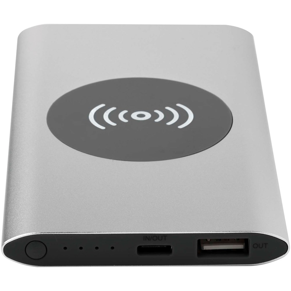 Powerbank mit Typ-C-Ein-/Ausgang und einem USB-A-Anschluss, sodass 2 Geräte gleichzeitig aufgeladen werden können. Sie unterstützt auch das kabellose Aufladen mit 5W für alle Qi-fähigen Geräte. Die Powerbank ist mit einem 4.000 mAh Lithium-Polymer-Akku ausgestattet, der eine maximale Ausgangsleistung von 10W liefert. Diese Powerbank besteht zu 28% aus RCS-zertifiziertem, recyceltem Kunststoff. Im Lieferumfang enthalten ist ein TPE-Ladekabel vom Typ-C auf USB-A.