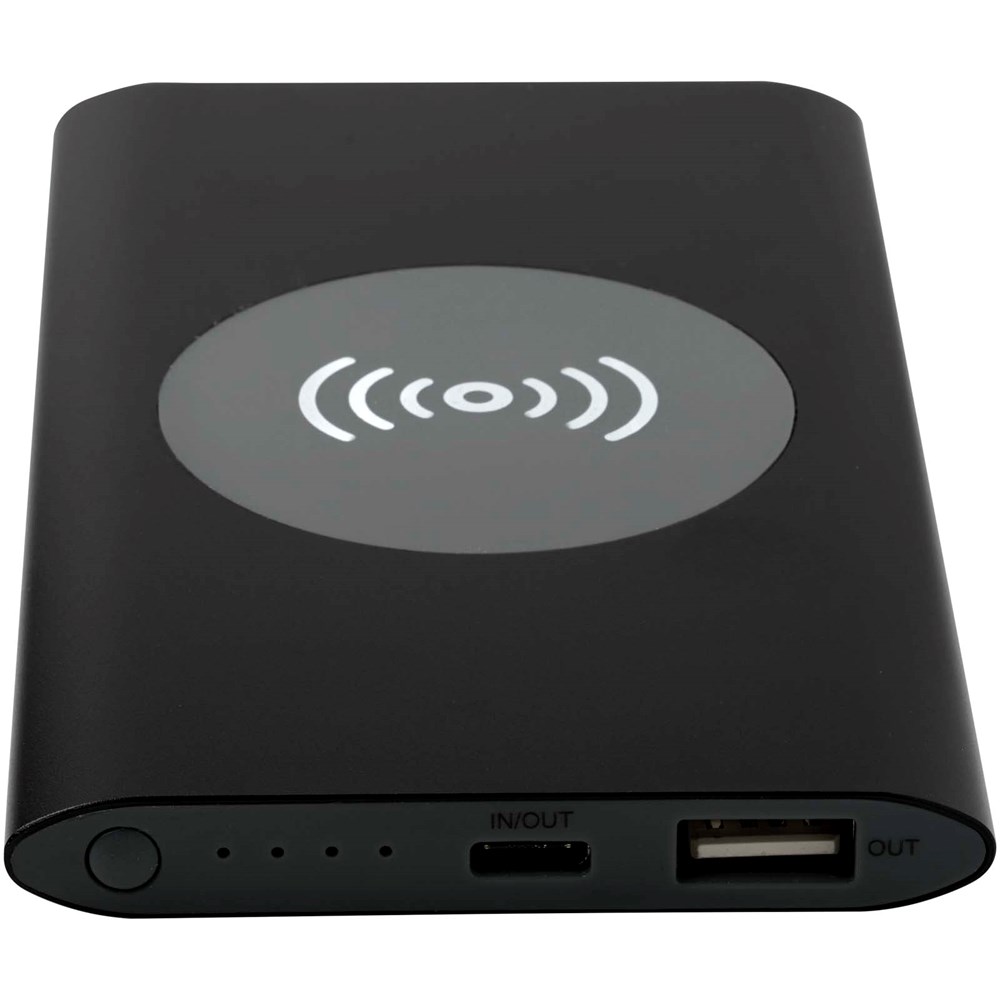 Powerbank mit Typ-C-Ein-/Ausgang und einem USB-A-Anschluss, sodass 2 Geräte gleichzeitig aufgeladen werden können. Sie unterstützt auch das kabellose Aufladen mit 5W für alle Qi-fähigen Geräte. Die Powerbank ist mit einem 4.000 mAh Lithium-Polymer-Akku ausgestattet, der eine maximale Ausgangsleistung von 10W liefert. Diese Powerbank besteht zu 28% aus RCS-zertifiziertem, recyceltem Kunststoff. Im Lieferumfang enthalten ist ein TPE-Ladekabel vom Typ-C auf USB-A.
