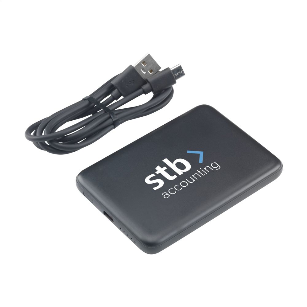 Magnetische, kabellose 15-W-Powerbank. Das Gehäuse besteht zu 100% aus GRS-zertifiziertem recyceltem Post-Consumer-ABS. Mit eingebautem Polymer-Li-Ionen-Akku (5000 mAh). Befestigen Sie das Ladegerät an der Rückseite Ihres Mobiltelefons, um Ihr Gerät aufzuladen. Kompatibel mit allen mobilen Geräten, die das kabellose Aufladen per QI unterstützen. Leistung: 15W. Bei anderen Handys kann es als normales Ladegerät verwendet werden. USB-C Eingang: 5V⎓3A, 9V⎓2.22A. USB-C Ausgang: 5V⎓3.0A 9V⎓ 2.22A 12V⎓1.67A. Inklusive USB-C/USB-C-Ladekabel aus recyceltem TPE und Gebrauchsanweisung. GRS-zertifiziert. Gesamtes recyceltes Material: 21%. Verpackt pro Stück.