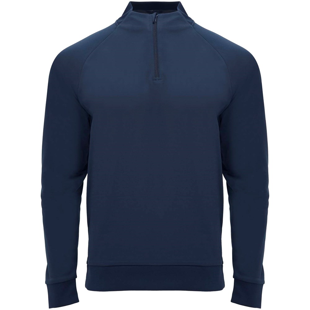 Sweatshirt aus Funktionsstoff mit Raglanärmeln und angerauter Innenseite. Stehkragen mit Half-Zip Reißverschluss und passenden verstärkten, verdeckten Nähten. 1x1-Rippstrick an Kragen, Ärmelbündchen und Saum. Abnehmbares Etikett. Sweatshirt passend zur Neapolis Hose.