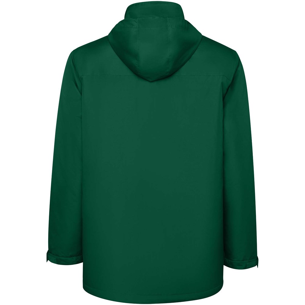 Wasserabweisende, wattierte Parkajacke für Herren. Hoher Kragen mit einrollbarer und abnehmbarer Kapuze mit Klettverschluss. Mittig durchgehender Reißverschluss mit Patte. Seitentaschen mit Reißverschluss und fester Patte. Innentasche mit Klettverschluss. Verstellbare Ärmelbündchen mit Klettverschluss. Verstärkungen im Rücken und auf der linken Brust.