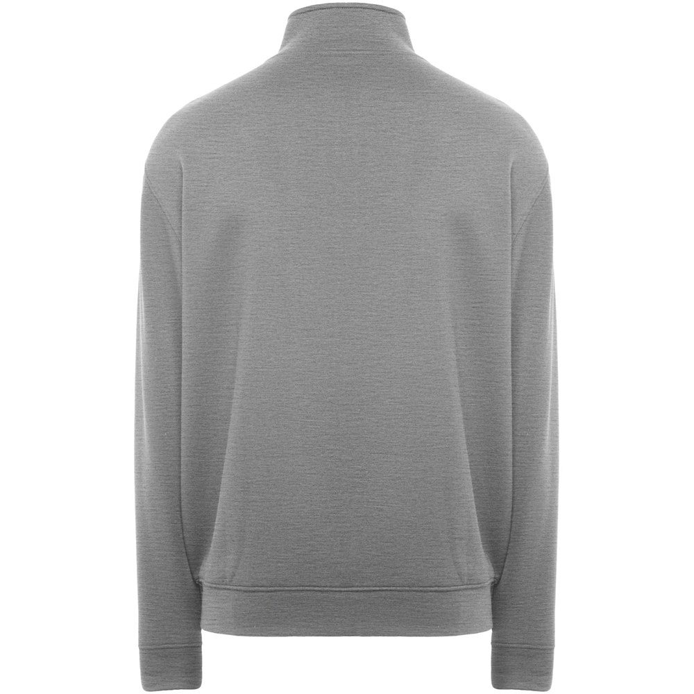 Pullover mit Stehkragen und passendem Reißverschluss. Passender Innenkragen mit verstärkten und verdeckten Nähten. Bündchen und Taille aus 1×1-Rippstrick. Herausnehmbares Etikett. Das männliche Modell ist 185 cm groß und trägt Größe L, das weibliche Modell ist 168 cm groß und trägt Größe S.
