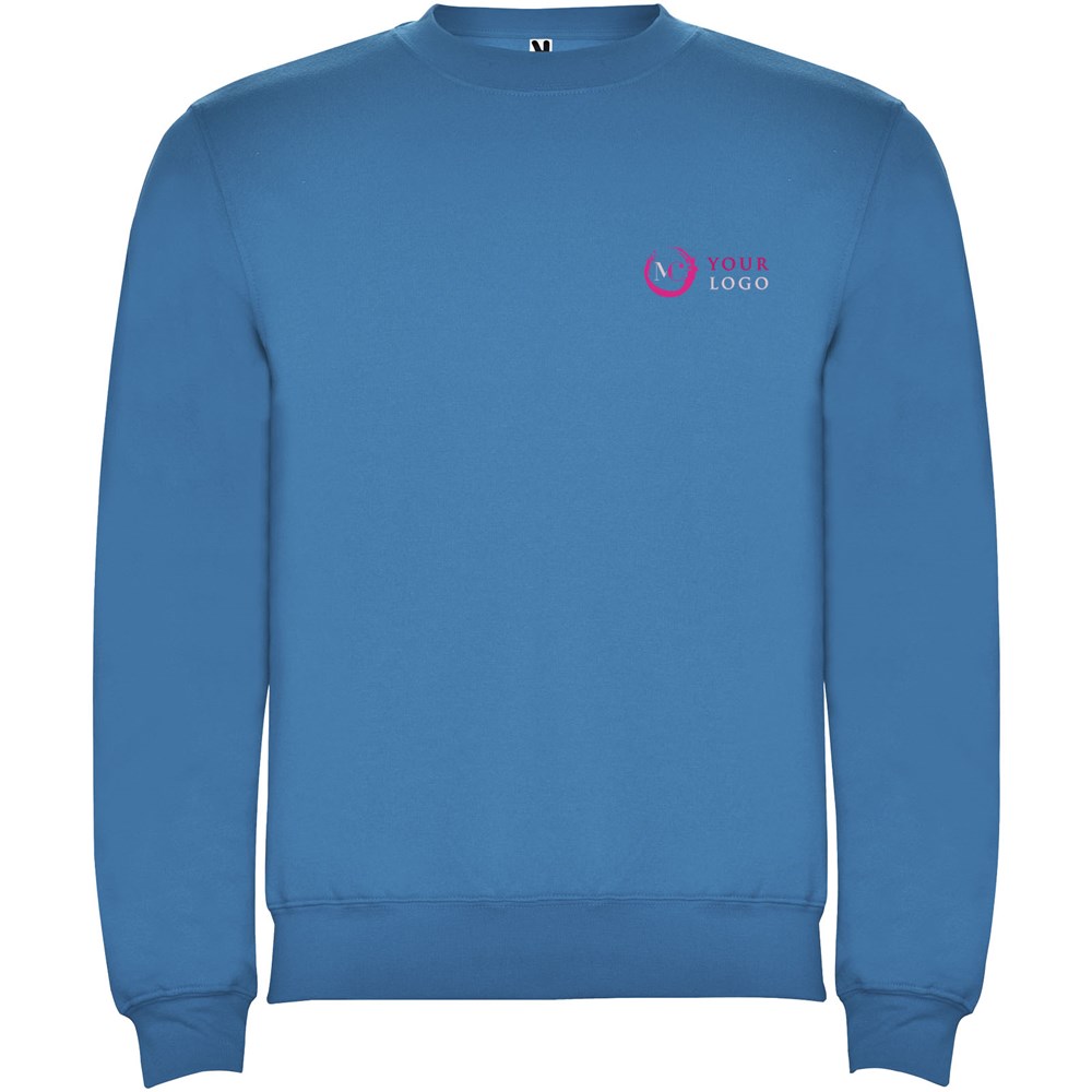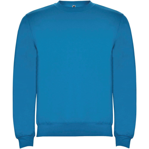 Klassisches Sweatshirt mit 1×1 Elastanripp an Kragen, Ärmelbündchen und Bund. Verstärkte und verdeckte Nähte am Kragen. Herausnehmbares Etikett.
