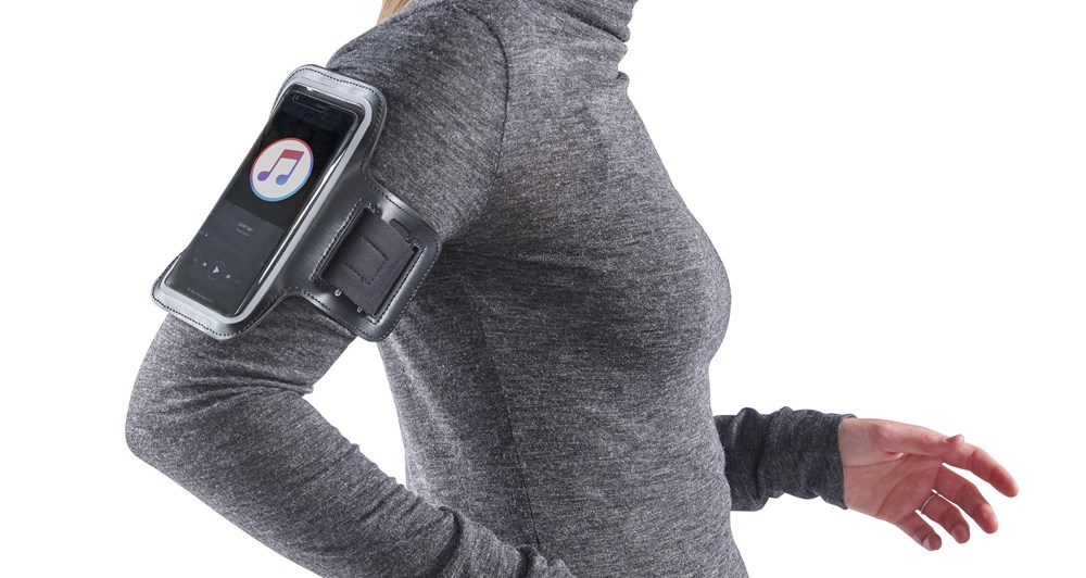 Handyarmband / Sportarmband 'Sport' aus Kunststoff und Neopren mit Klettverschluss. Die silbernen Details sind reflektierend.