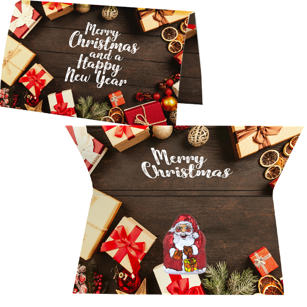 Mini Schoko-Weihnachtsmänner, ca. 7g, Werbekarte A6 gefaltet