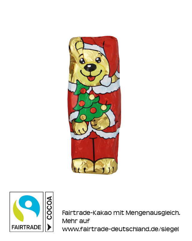 Schoko-Bärchen aus Fairtrade Edelvollmilchschokolade, mindestens 33% Kakao.