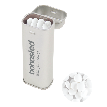 Easy Tin mit Scharnier standardmäßig gefüllt mit DutchDex Dextrose-Minzbonbons.