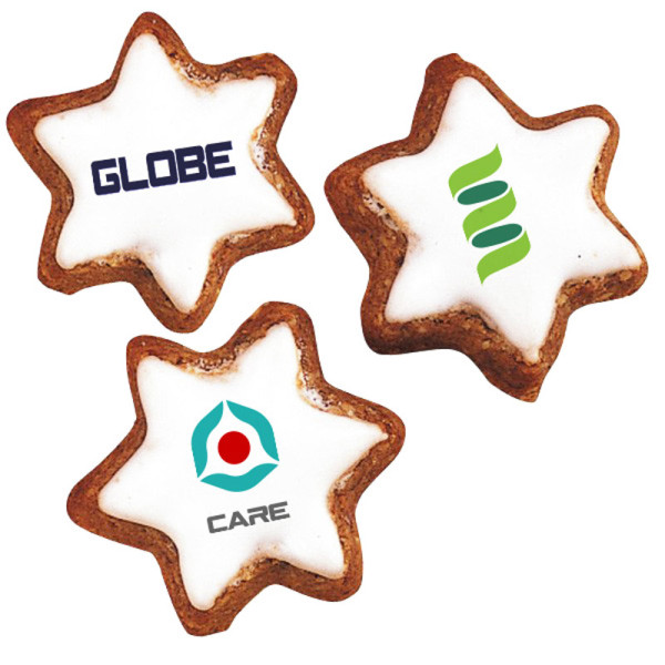 Zimtstern mit farbigem Logodruck im Klarsichttütchen. mehr
