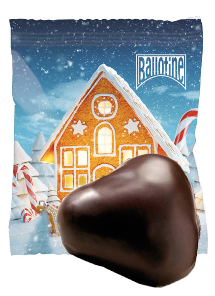 Lebkuchenherz (mit Aprikosenfüllung) einzeln verpackt im weißen oder transparenten Werbetütchen. Die Folie wird im Digital oder auf Anfrage 1 bis 4 farbig mit Ihrem Motiv gedruckt.