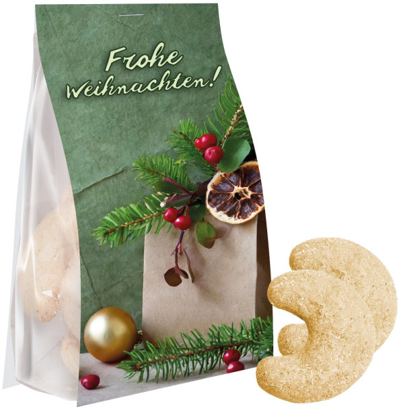 Vanillekipferl, 100g, Express Blockbodenbeutel mit Werbereiter